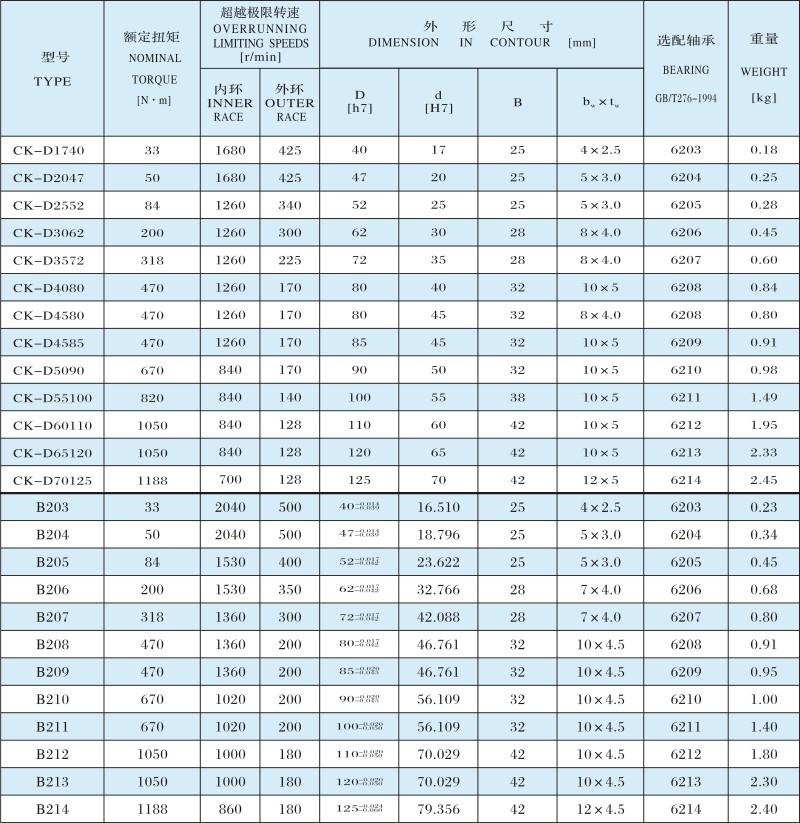 CK-D、B200楔塊式單向離合器